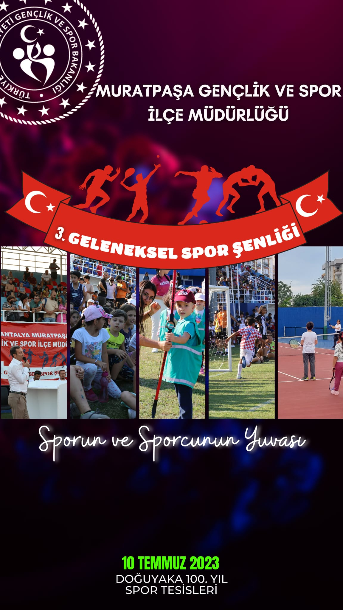 Haber Tarihi: 5 Temmuz 2023 - Çarşamba MURATPAŞA GENÇLİK VE SPOR TURNUVASI BAŞLIYOR İNDİR Muratpaşa Gençlik ve Spor İlçe Müdürlüğü tarafından üçüncü kez düzenlenecek olan Futbol turnuvası başlıyor! Başvuru şartları ve detaylara ilişkin bilgilendirme formu ektedir.