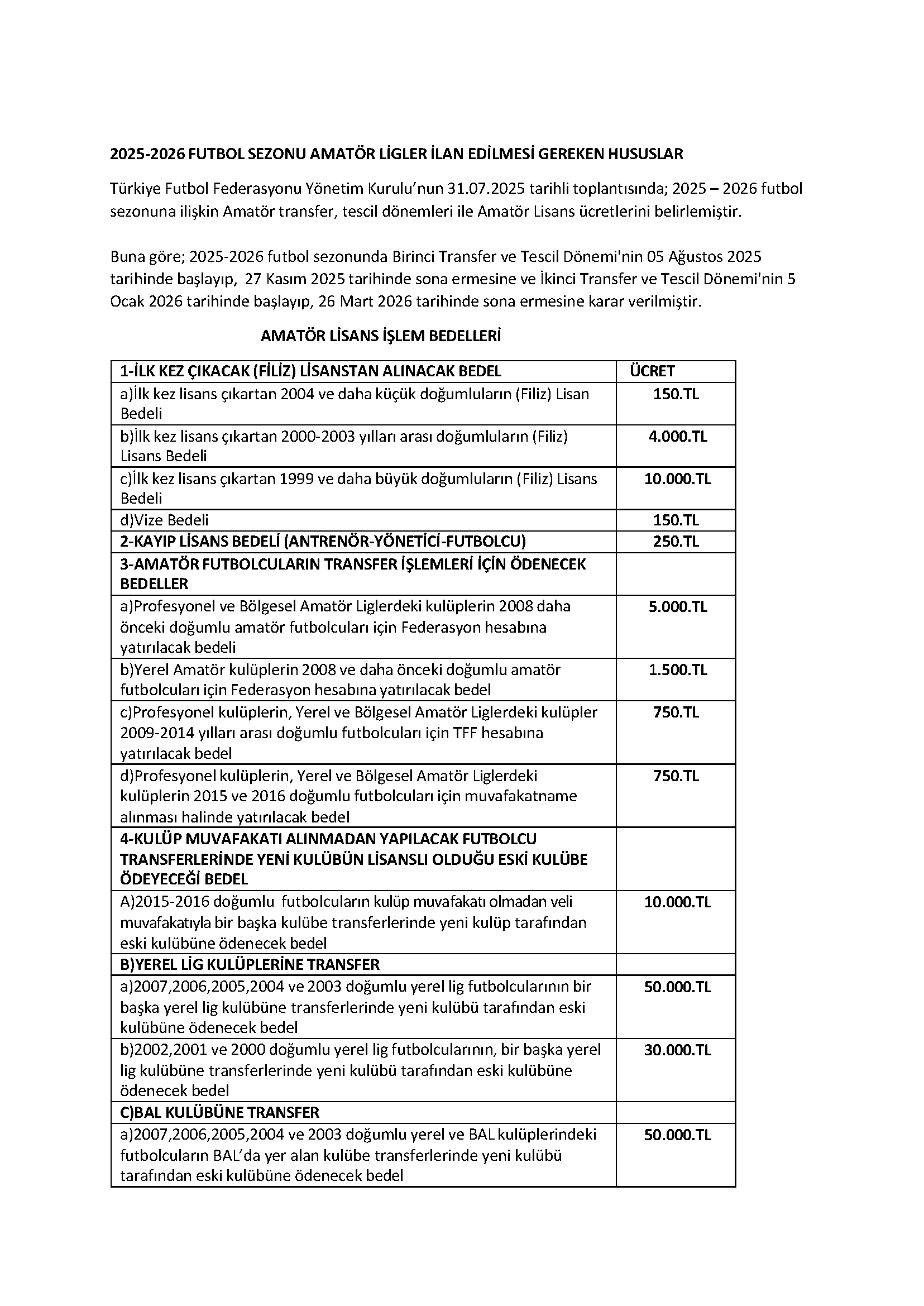 Uluslararası Yabancı Amatör Oyuncu Transfer Belgeleri