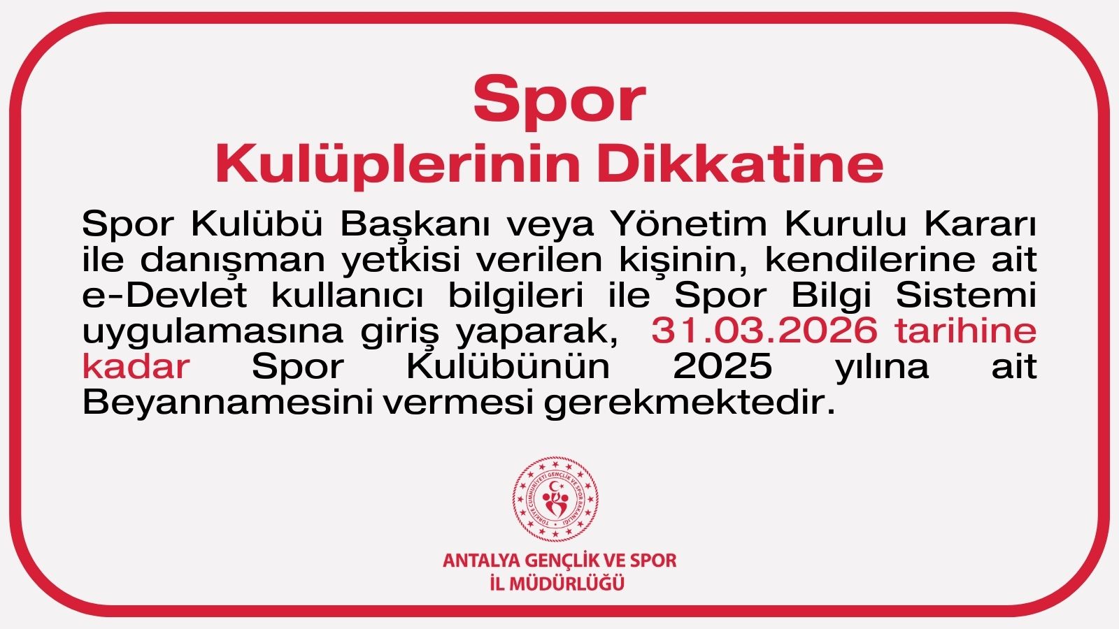 KULÜPLERİMİZİN DİKKATİNE ! (U12)