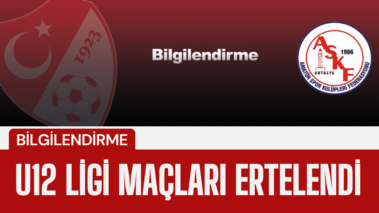 07.01.2024 PAZAR GÜNÜ SAAT 13:00 VE SONRASINDA OYNANMASI PLANLANAN U12 LİGİ (MERKEZ) MAÇLARI ERTELENMİŞTİR