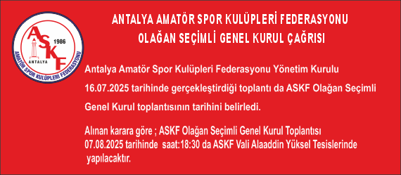 ANTALYA AMATÖR SPOR KULÜPLERİ FEDERASYONU OLAĞAN SEÇİMLİ GENEL KURUL ÇAĞRISI